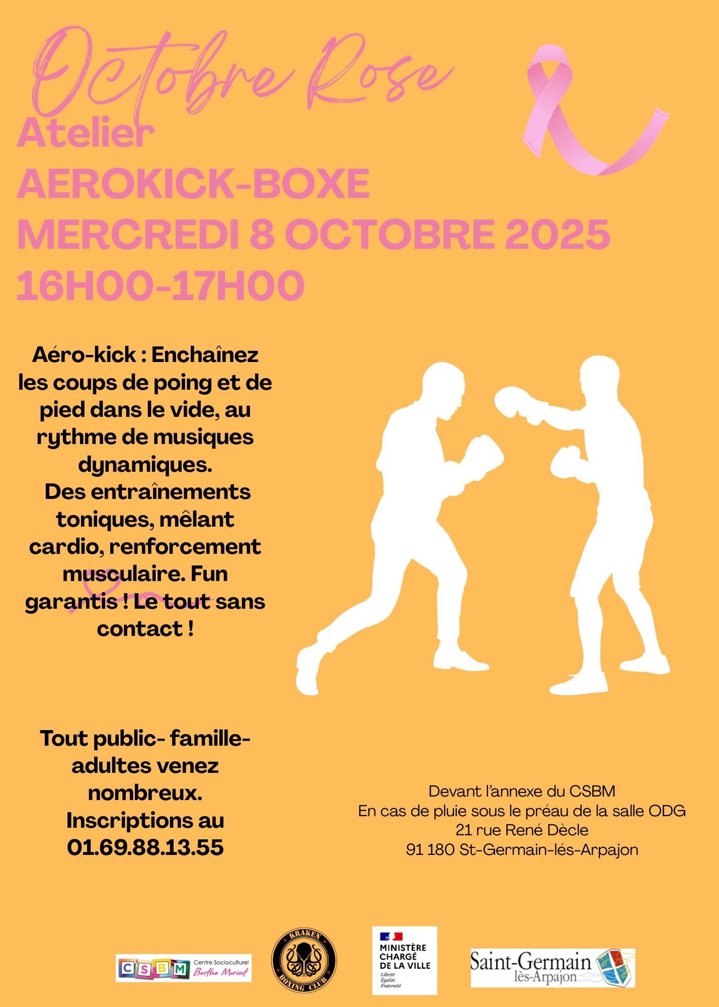 Dans le cadre d’Octobre Rose, le Centre Socioculturel Berthe Morisot a le plaisir de vous inviter à un atelier AéroKick-Boxe.