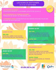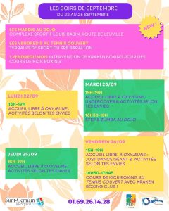 Retrouvez le programme des mercredis et le programme des activités du soir du mois de septembre concoctés par l’équipe du service Jeunesse Oxyjeune !